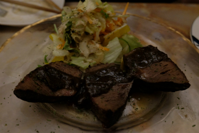 ハンバーグの中からとろとろのチーズが出てくるのがよろしい。また、醤油味のきいたソースが日本人(特に高齢者)にマッチすると思います。