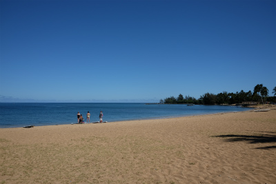 まずはハレイワビーチ。朝方というので、まだ人の数も少なくきれいな海を楽しめました。