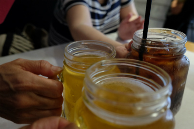 お買い物から戻られた二人と合流して、前から気になっていた「クラッキン・キッチン」へ夕食にでかけました。