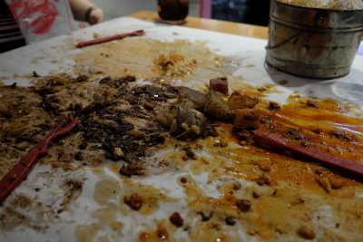 完食。店員はクロスごと丸めて片付けました。お皿を洗う必要がありませんね。