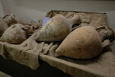 海から引き上げられたアンフォラ(テラコッタ製のワインつぼ)も展示されてます。