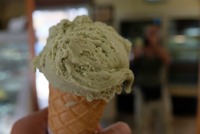 イタリアではジェラートも外せません。抹茶ではなく、ピスタチオです。後ろの鏡にタンクトップのおばかが映っているのがわかりますが。