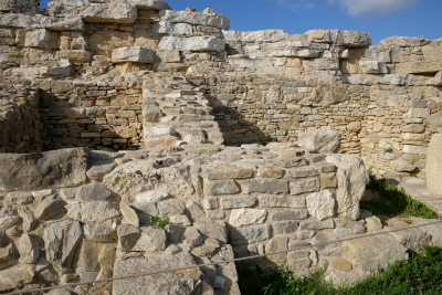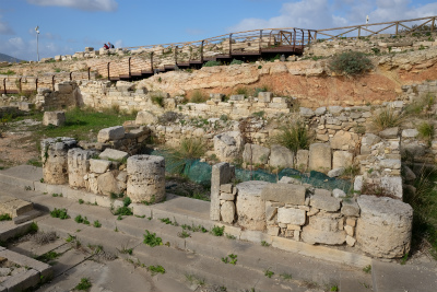一方、山の上にある劇場に向き合うような形で、神殿があります。こちらは紀元前5世紀の建造。神室がなかったり、柱に溝がないのが謎だそうです。保存状態が良いと思います。