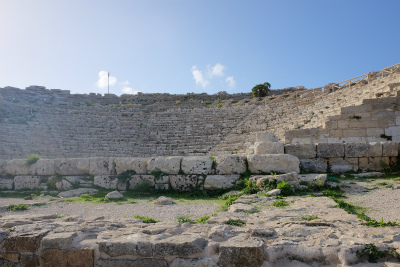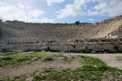 劇場は紀元前3世紀頃に建てられたもの。劇場の座席に座り、景色を眺めると素晴らしいです。古代の上演風景を想像すると、ロマンを感じます。