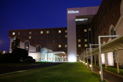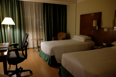 予約してあったヒルトンにチェックインしました。空港内といっても、ターミナルから15分くらい歩かねばなりません。