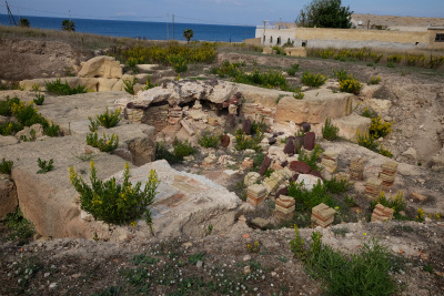 そして、考古学公園。海に面した博物館の裏手に広大な敷地が広がります。ローマ時代の大通り、住居跡、墓などの遺跡があります。