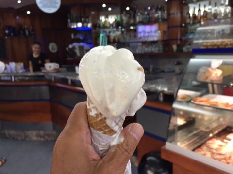 お昼はカルボナーラをいただきました。ノー・イングリッシュの店なるも、注文に成功!