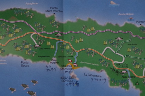 - 浮いた船が見えるのは、カラ・プルチーノとタバッカーラ。但し、タバッカーラは陸側からはアクセス不能。昨日訪れたカラ・プルチーノに船が一隻しかいなかったのはオフ・シーズンのため。(観光シーズン :5月〜10月1週くらい)