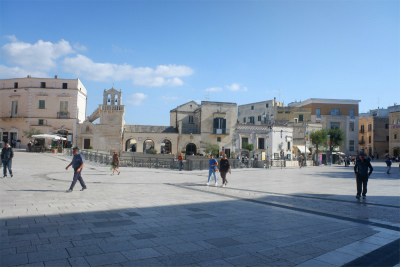 マルケサーレ門をくぐると、旧市街となり、時計塔(正面)と教会(右側)があるヴィットリオ・エマニュエレ二世広場。