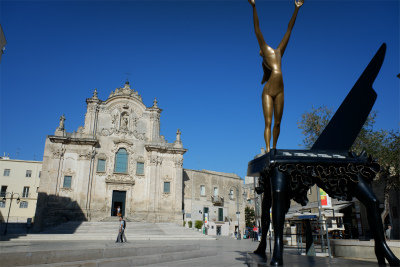 イタリアのラブソング「ボラーレVorare」のオリジナル作詞作曲者Domenico Modugnoはポリニャーノの出身。モニュメントはまさに題名Vorare(飛ぶ!)のように青空に両手を大きく開き、羽のようです。