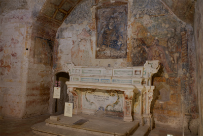 祭壇。フレスコ画はどれも傷みが激しそう。