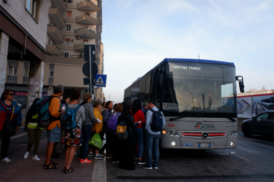 本来ならバーリから私鉄SudEst一本で行けるところですが、一部工事中のため、代替バス+電車で向かわねばなりません。しかし、現地に来て、バス一本で行ける方法があると教えてもらい、それにしました。