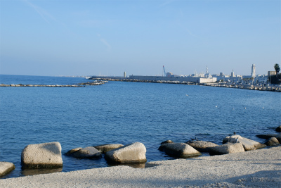 ここで、一休み。奥の方に見えるのはトラーニ港。