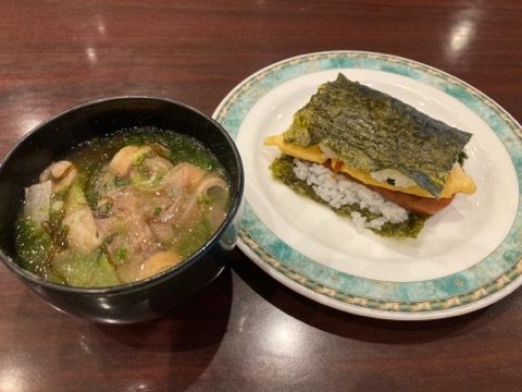 “ポーク卵おにぎり”はトッピングを選んで目の前で作ってくれます。ハワイのスパムおにぎりを思い出します。沖縄からハワイへ出稼ぎに出かけた人がたくさんいるので、そこから沖縄に持ち込まれたのでは、、、