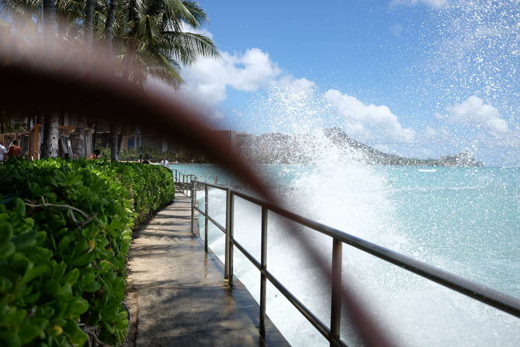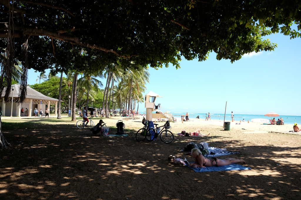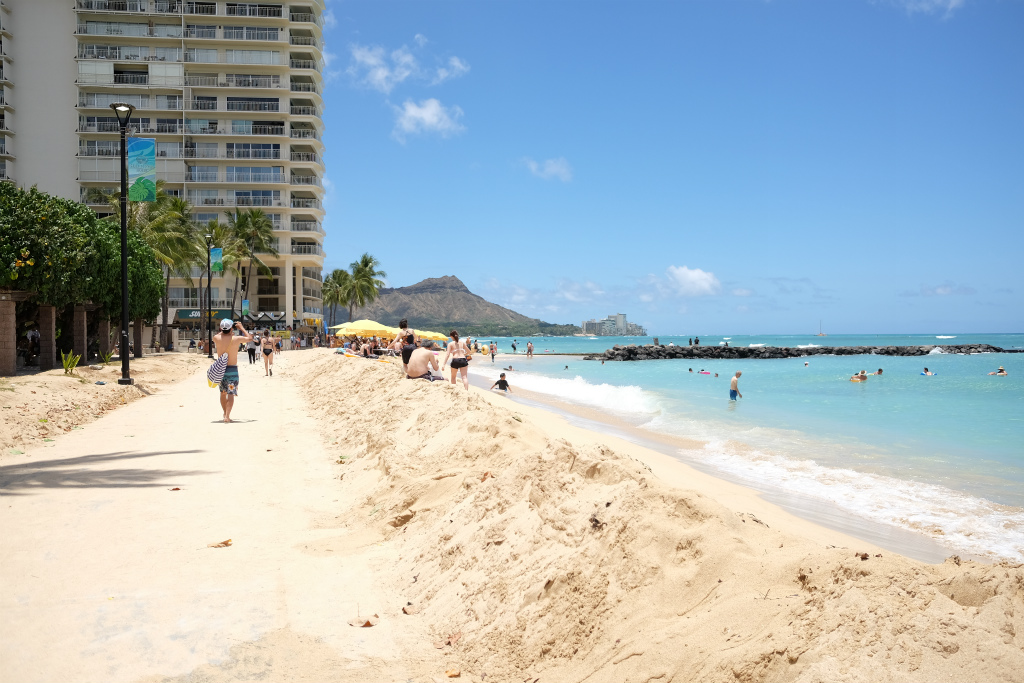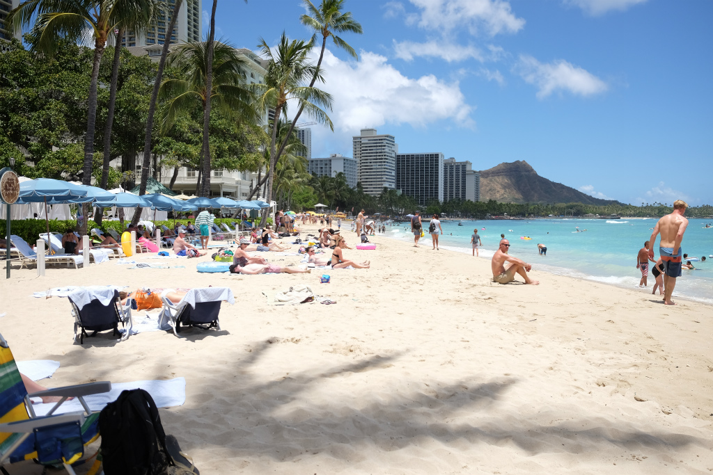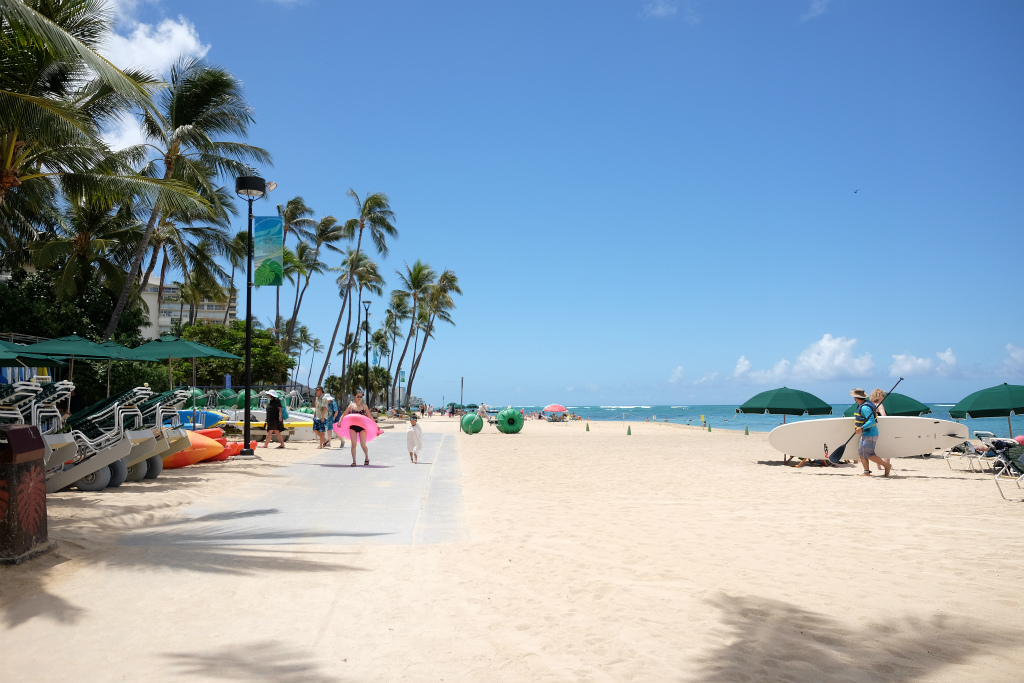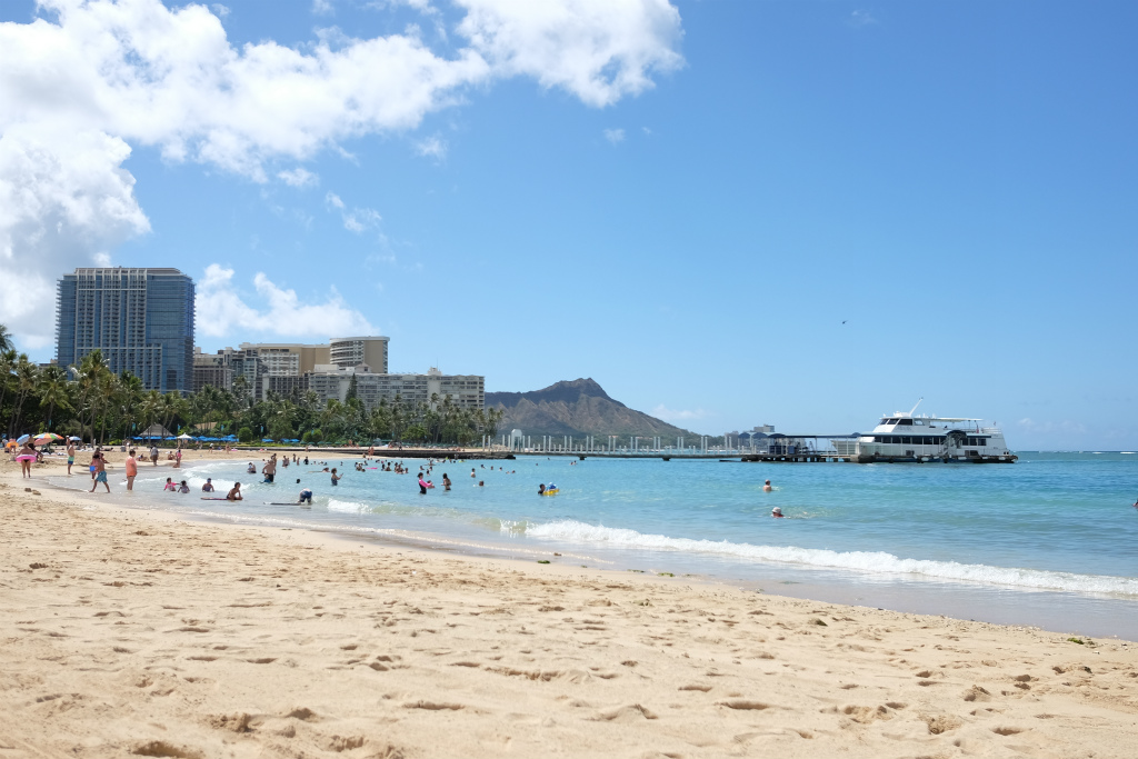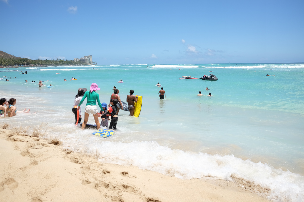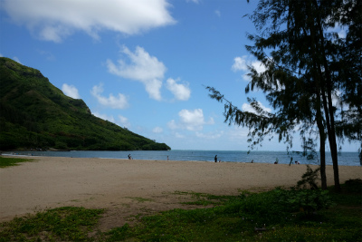 バス降りると、目の前はカハナベイの砂浜です。