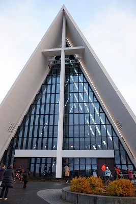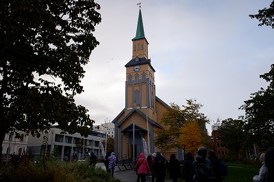 食事のあと、すぐ近く(町の中心的なところ)にある、トロムソ大聖堂を見学。