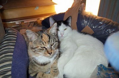 最近は車庫の中でも過ごしているようです。ここは今年4月に母親のチーちゃんが出産をした場所。つまり、仔猫2匹のふるさとです。