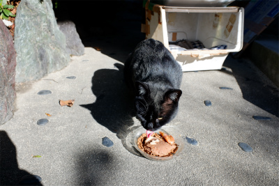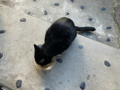 クロちゃんは相変わらずノラ状態ですが、基本的に我が家の敷地内にいることが多いです。一日2回の食事もとっているので大丈夫。