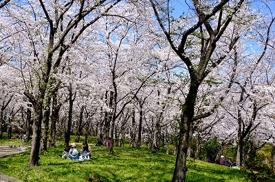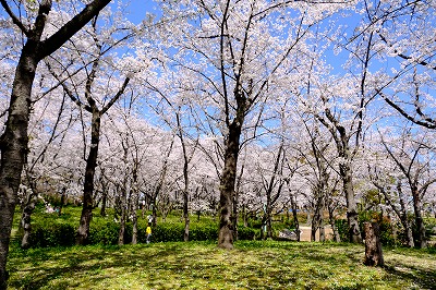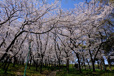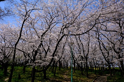 公園の小高いところに、桜の木が植えてあり、中に入ると、まるで森の中にいるような感じがします。