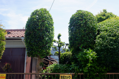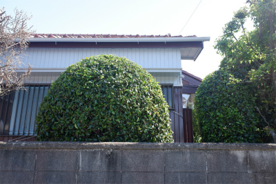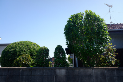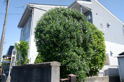 おなじみ、玄関前の金木犀。てっぺんも綺麗に剪定できてますよ。