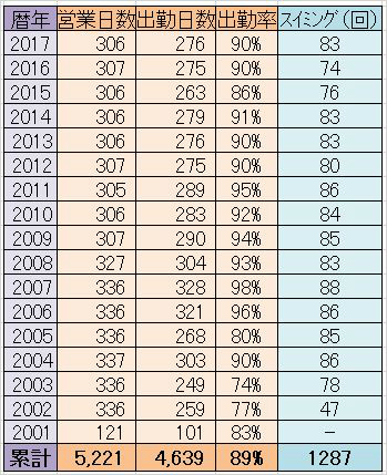 (備考:2001年8月開館。2008年9月以降は月2回→毎週木曜日休みとなり、年間営業日数が減)