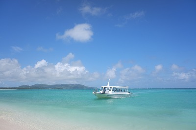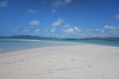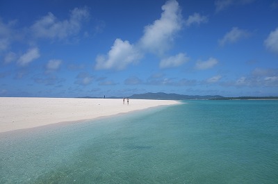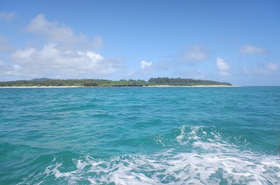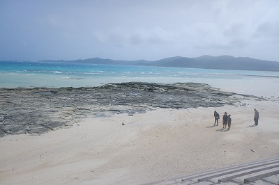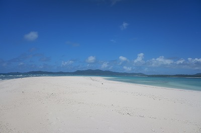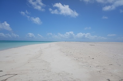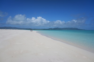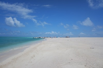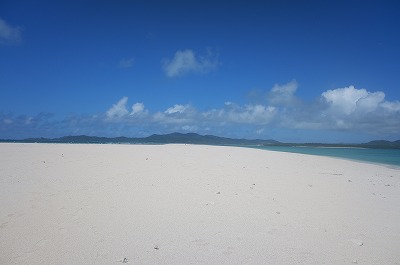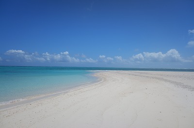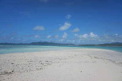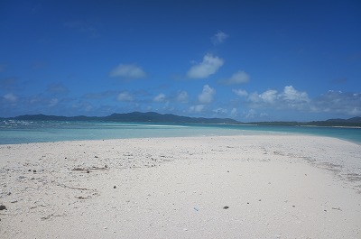 久米島の東側にある奥武(おう)島、オーハ島の沖合に浮かぶ長さ7㎞の3つの砂洲(「マエの浜」、「ナカの浜」、「ハテの浜」)があり、これらを総称して、「ハテの浜」と呼ぶこともあるようです。砂でできた島というところですが、人はもちろん住んでいません。