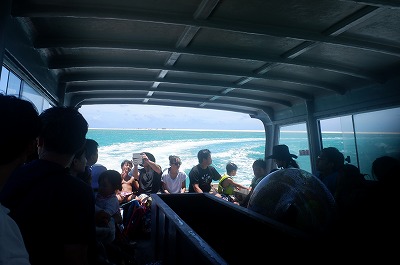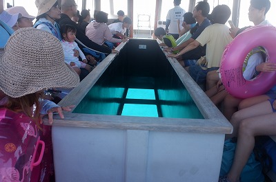 ツアーがいくつかあるようですが、今回選んだのは、グラスボートに乗って、泊フィッシャリーナ(旧港)を出発、30分ほどで、「ナカの浜」に向かうもの。