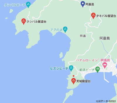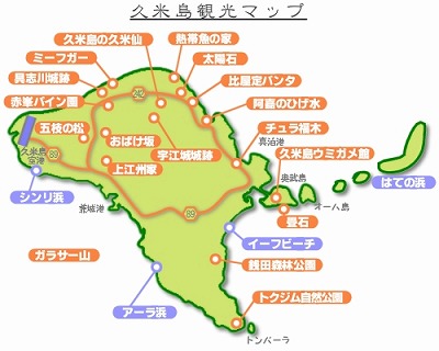 久米島の主な見どころは、上掲の観光マップのとおり。今回は、島を右回りでまわる計画です。