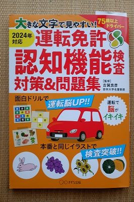 「認知機能検査」の受験日はあらかじめ指定されていて、7月1日となってます。上記の問題集を参考に、無事に「合格」できるよう頑張ります。なお、高齢者講習のほうは、近くの自動車学校で6月6日(本日)受講予定。混んでなくて、ストレスなく予約できました。