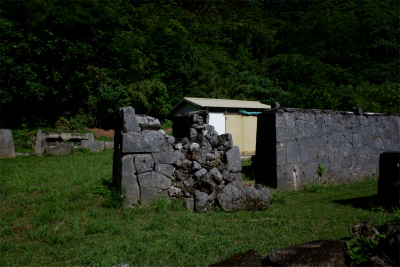 慶留間集落の入口にあります。第2次世界大戦末期に米軍によって捕虜となった伊江島島民約2100名のうち 座間味村に収容された約400名がこの地区の家に分散して住まわされた。 戦跡地は村や住民にとって大切な場所です。