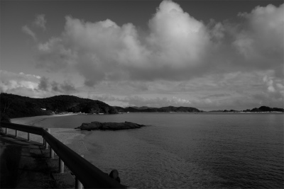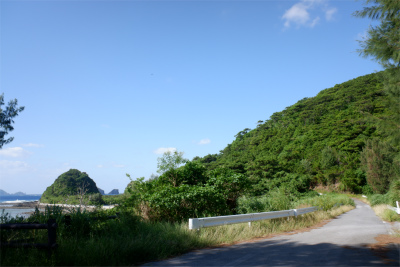展望台から宿に戻る途中です。右に見えるのが慶留間島。
