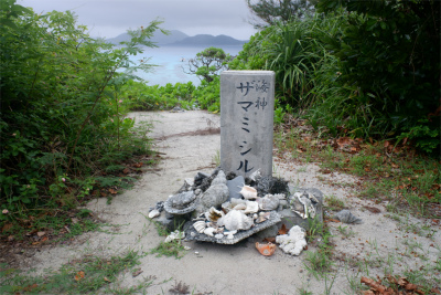 阿嘉島から長い橋を渡って慶留間島に入ると、すぐに陸軍特攻艇「マルレ」の秘匿壕があります。終戦間際に、米軍軍艦に突撃する突撃艇を隠しておいたところ。