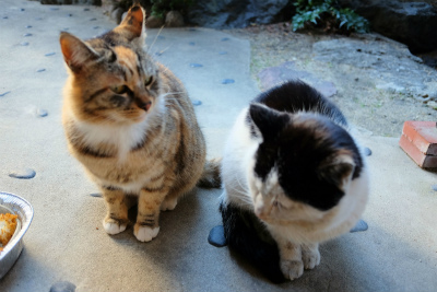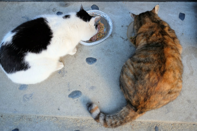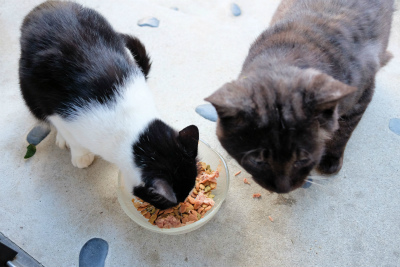 マロちゃんとユキちゃんが揃って、朝の食事タイムです。