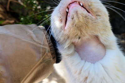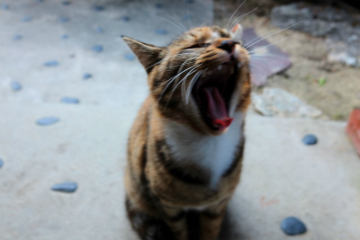 変顔のマロちゃん。オス猫なので、出かけること多し。