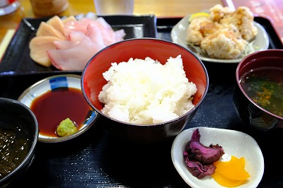 ●お昼は漁協食堂で刺身定食をいただきました。