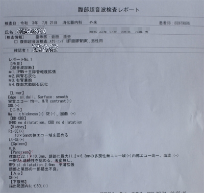 今回も、腹部超音波(エコー)検査と血液検査(腫瘍マーカー含む)をしました。